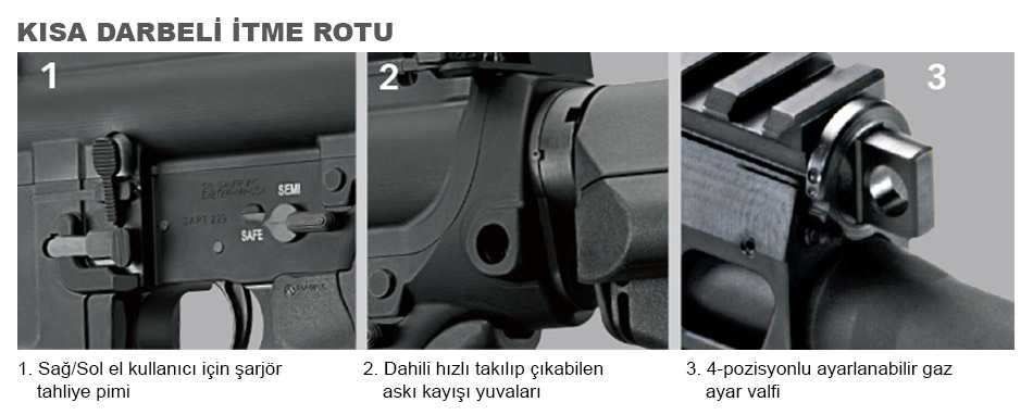 SIG Sauer® dünya genelinde yaygın olarak bilinen AR tipi tüfek platformuna ait bilinen geleneksel gaz basınç darbe teknolojisini geliştirerek Stroke Push Rot (Eşzamanlı İtme Rotu) adı verilen yeni teknolojiyi endüstriye kazandırmıştır. Bu sayede sistem çok daha uzun süre çok daha temiz kalmaktadır. Sonuç tartışılmaz ölçüde eşsizdir. Mekazima ısınmaz, pislenmez, tutukluk yapmaz. Yağmur, çamur, kum her türlü ortamda sorunsuz olarak çalışır.